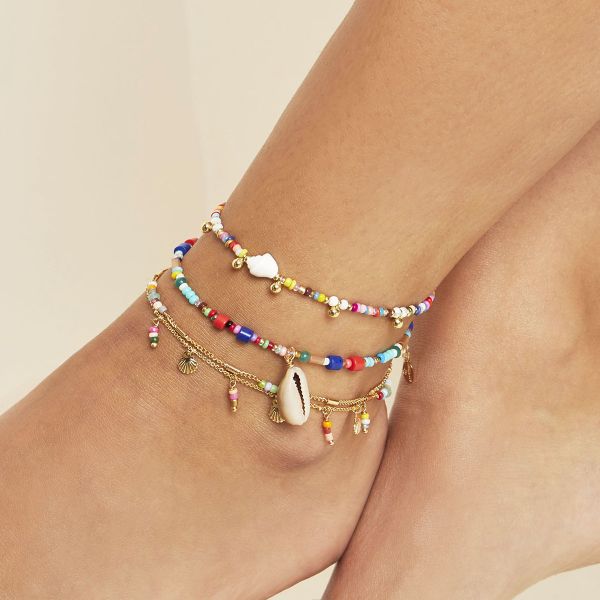 Enkelbandjes zijn een must voor de zomer! Dit leuke vrolijke enkelbandje heeft verschillende kleurtjes en een schelpje.