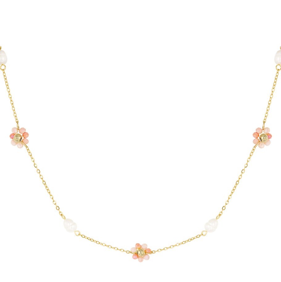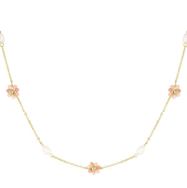 Wauw! Check nu deze prachtige gouden ketting met koraal-kleurige bloemen!